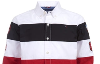 Tommy Hilfiger Big Boy's Philip Colorblocked Stripe Patch Poplin Shirt White Size L