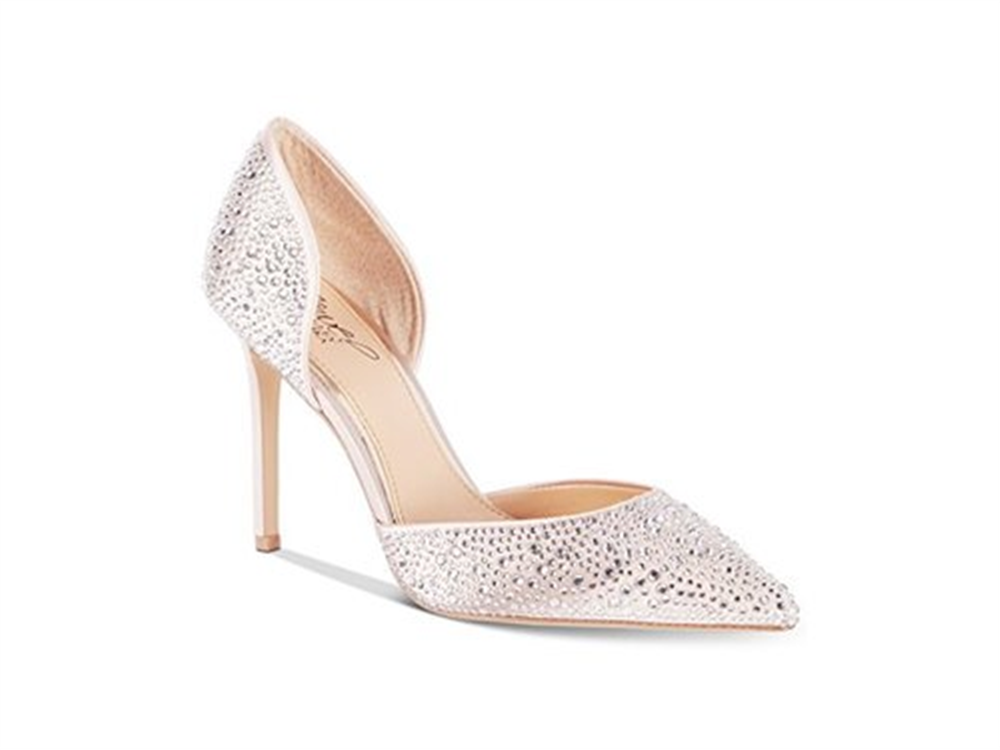 Badgley Mischka Women's Alexandra Embelished Pointed Toe Pump Champagne Beige Size 7 M