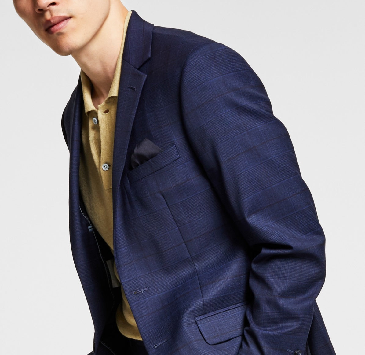 Bar III Men's Skinny Fit Wrinkle Resistant Wool Suit Separate Jacket Blue Size 44