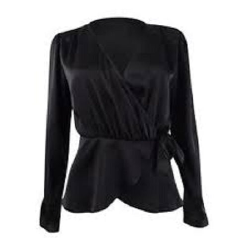 Bar III Women's Faux-Wrap Tie-Waist Top Black Size X-Small