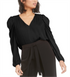 Bar III Women's Long Sleeve V Neck Top Black Size Large