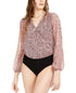 Bar III Women's Printed Surplice Bodysuit -Pink Size -Large