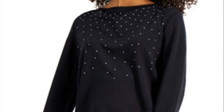 Bar III Women's Studded Long Sleeve Top Black Size Small