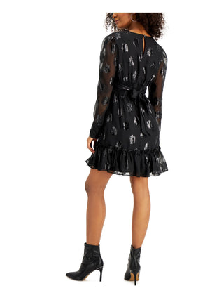 Bar III Women's Embellished Keyhole Back Long Sleeve V Neck Short Fit Flare Dress Black Size Small