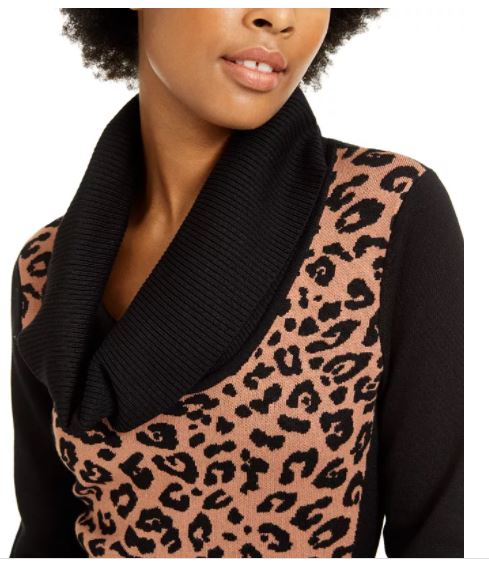 BCX Junior's Cowlneck Animal Print Sweater Dress Beige Size X-Small