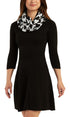BCX Junior's Printed Scarf Fit & Flare Sweater Dress Black Size X-Large