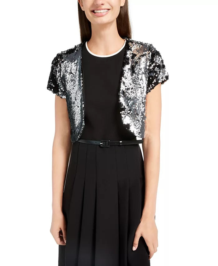 Approx. 15" long|Open front|Allover sequins|IMPORTANT NOTE: This item arrives with a return tag attached and instructions for removal. Once the tag is removed from the dress, this item cannot be returned.|Shell, lining: polyester|Hand wash