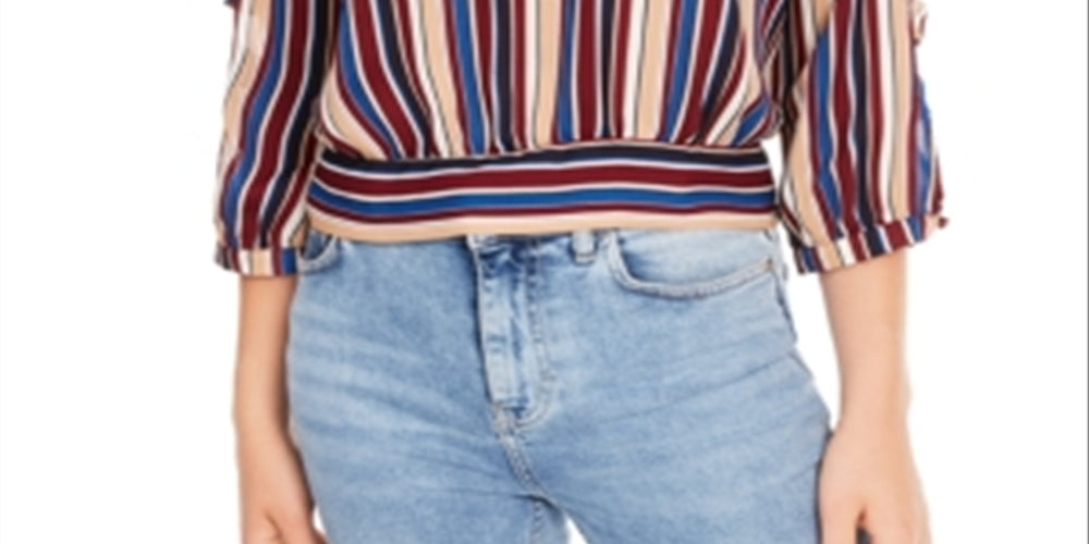 BCX Juniors' Striped Lattice-Sleeve Top Juniors Juniors' Clothing - Tops ()