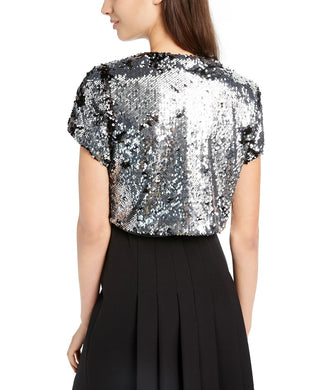 BCX Juniors' Sequined Bolero Jacket Silver-Black Size Small