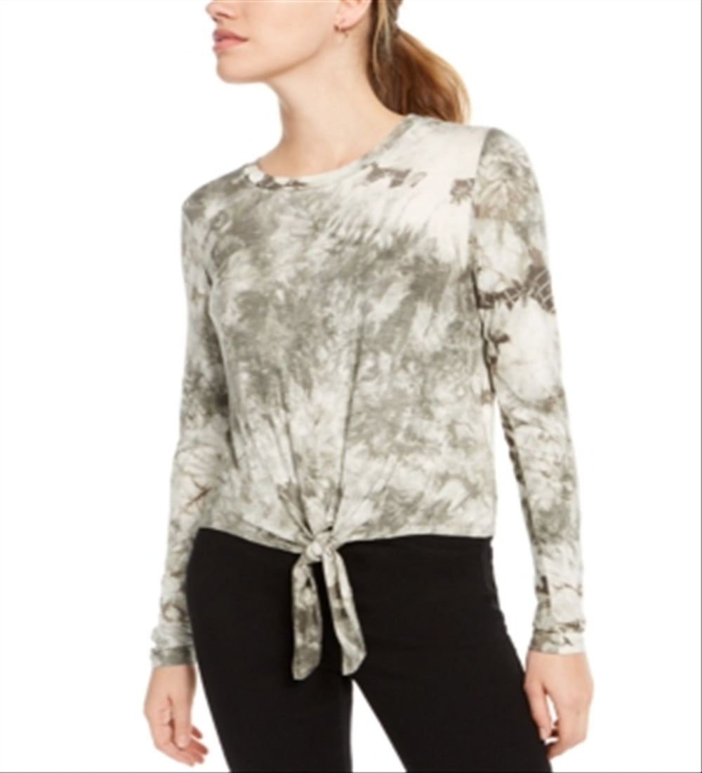 Belle Du Jour Junior's Tie Dye Tie Front Top Green Size X-Large