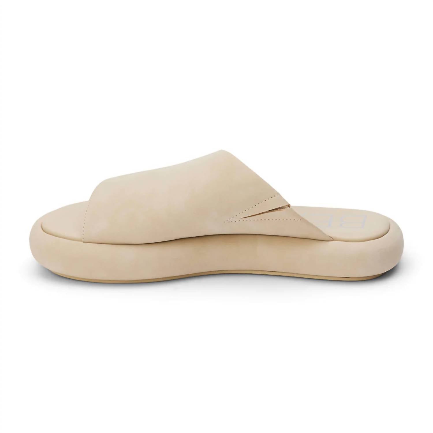 This sandal will take you from brunch to dinner and everything in between. Stunning bone-colored sandals. Feature a chic asymmetrical thick strap. Stylishly sweeps across your foot. Providing both a sophisticated look and a secure fit. Slight platform. Designed to run true to size. We recommend sizing up if you typically wear a half size or are in between sizes. Synthetic leather upper. Manmade outsole. Synthetic leather lining. Padded insole.