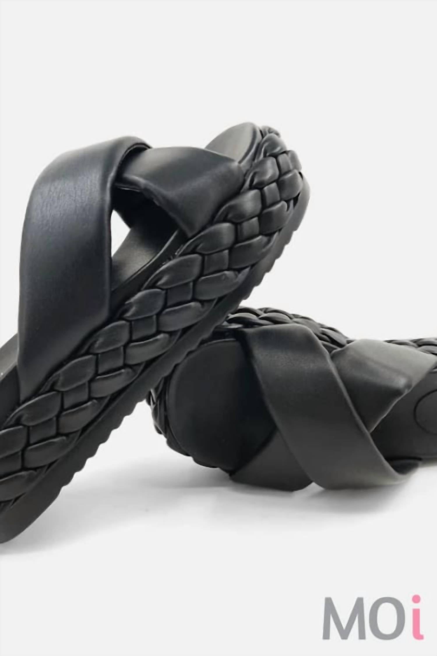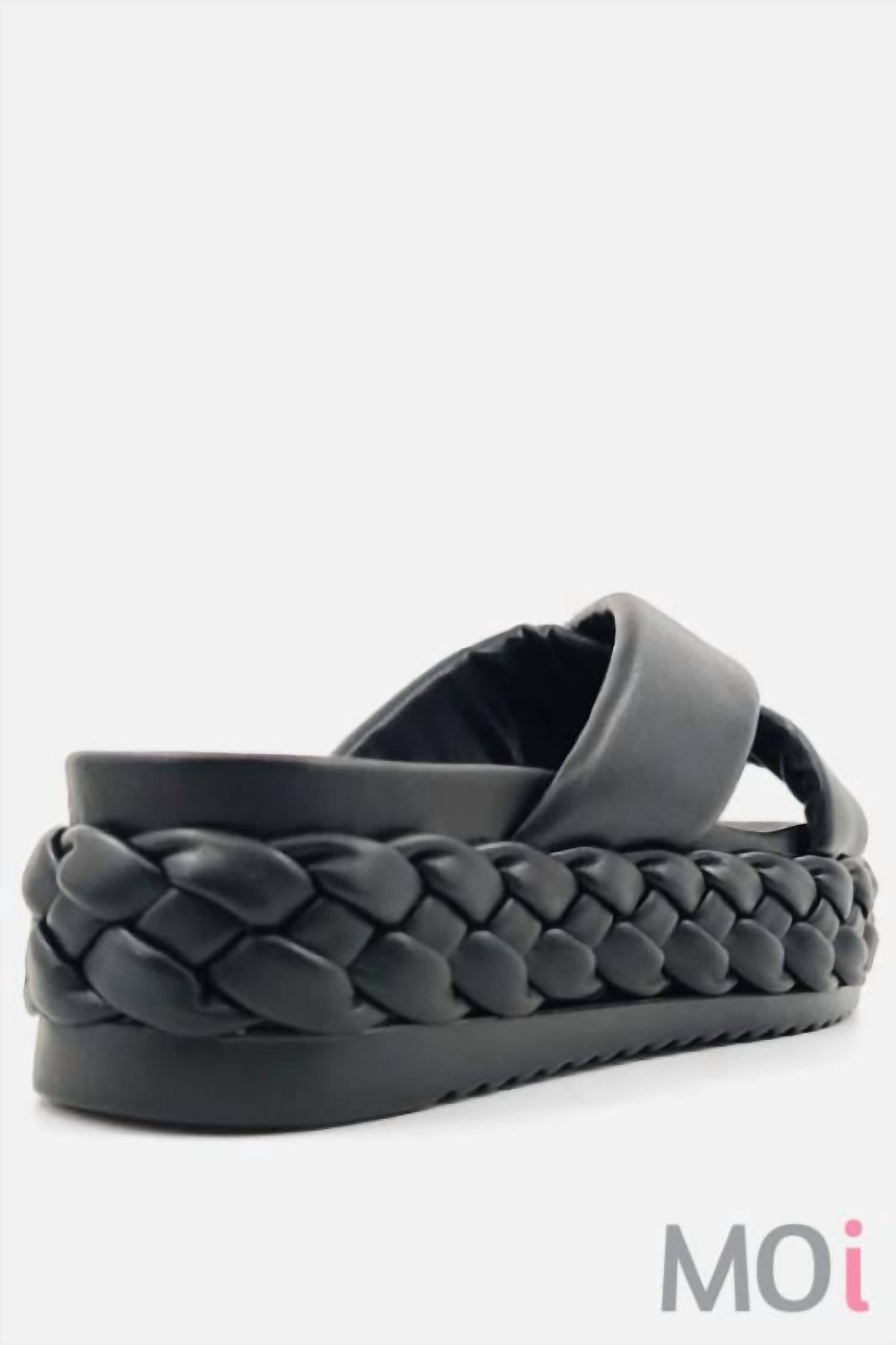 The perfect variation on one of our favorite trends this season.KIMORA features a striking flatform covered in faux leather and finished with an eye-catching chunky braid. The criss-cross upper straps and cushioned insoles will help keep your look grounded and comfy.