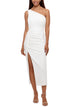 Sleek one-shoulder styling| shape-hugging ruching| a high slit and a back cutout combine in Betsy & Adam's midi dress to create a glam goddess vibe for a bride-to-be's festivities| a graduation or formal celebration.| Approx. 46-1/2 long from center back neck to hem. Length is based on size 4 and varies 1/4 between sizes| Falls below the knee to lower calf| Asymmetrical neckline; Midi silhouette