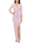 Betsy & Adam Women's Ruched Ruffle Trim Gown Pink Size 4