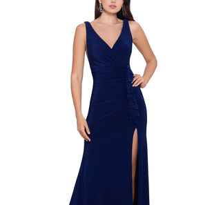 Betsy & Adam Women's Embellished Cascade Ruffle Gown Blue Size 12