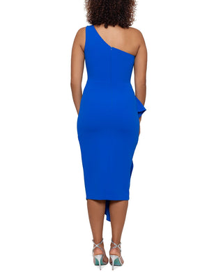 Betsy & Adam Women's One Shoulder Ruffled Midi Dress Blue Size 14