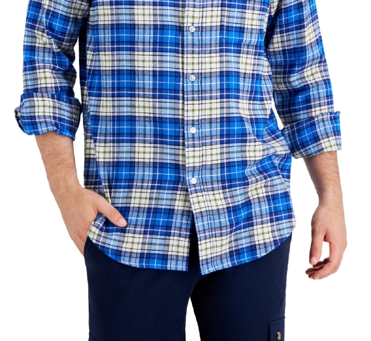 Club Room Men's Regular Fit Plaid Flannel Shirt Blue Size Large