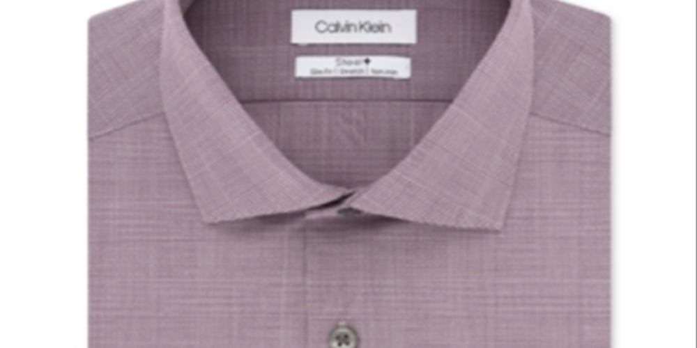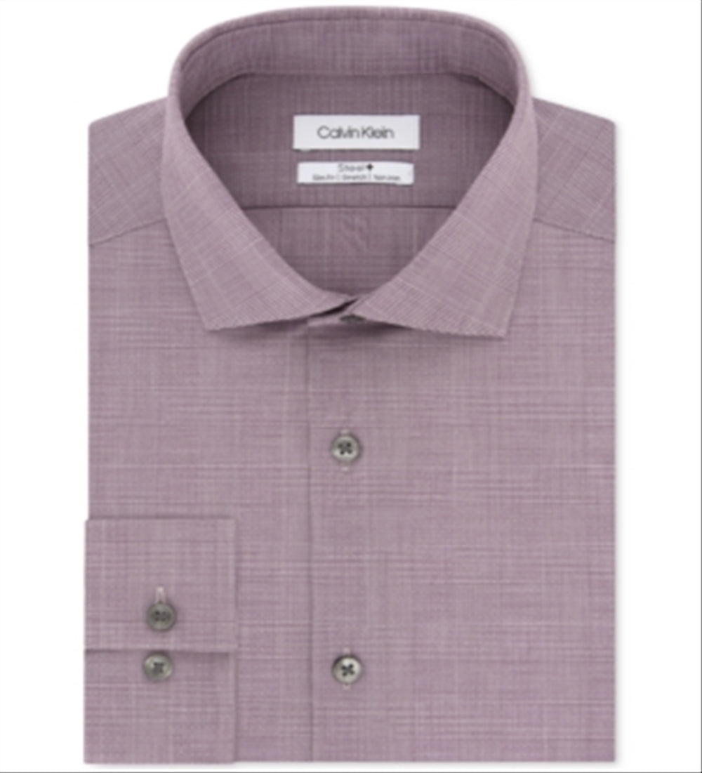 Calvin Klein Men's Steel Slim Fit Non Iron Performance Stretch Print Dress Shirt Red Size 17X32X33