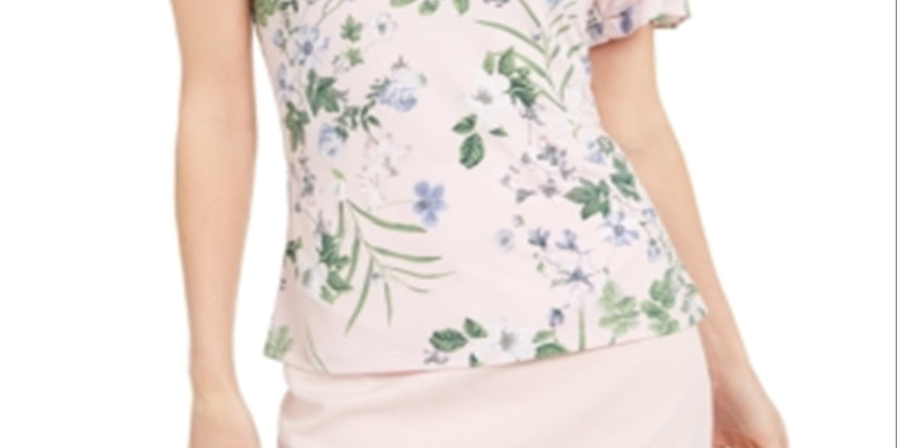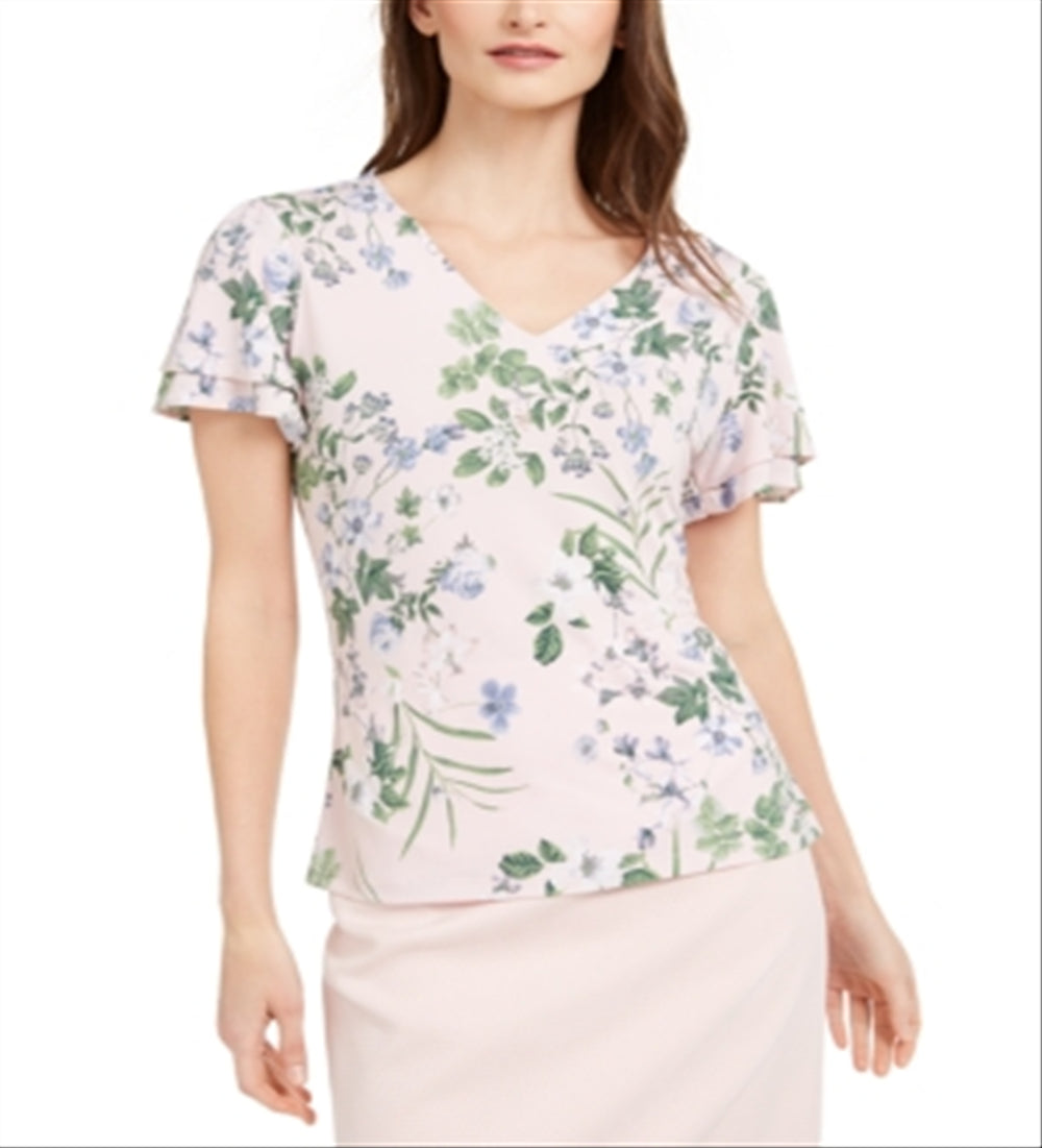 Calvin Klein Women's Floral V Neck Blouse Pink Size Small