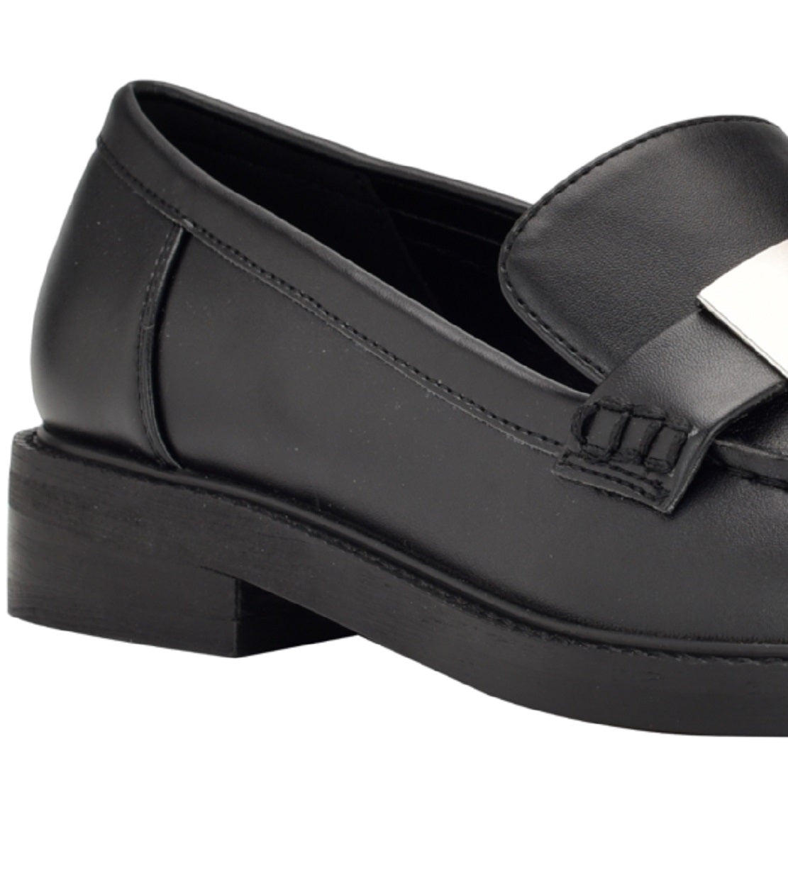 Slide into the Calvin Klein Gerona loafers for a sleek and modern take on a classic silhouette. It features a detailing across the upper. Founded in New York in 1968| the brand elevates everyday essentials to globally iconic status.| Heel height - 1.06| block and stacked heel| Slip-on closure| Faux leather upper| manmade lining and sole