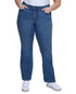 Calvin Klein updates your denim style with these plus-size high-rise jeans featuring bootcut legs and a medium blue wash.| Approx. inseam; 32| High rise; approx. 10-1/2; leg opening; approx. 17-1/2| Front button closure with zipper fly; belt loops| Front whiskering| Cotton/Repreve polyester/rayon/spandex| Machine washable