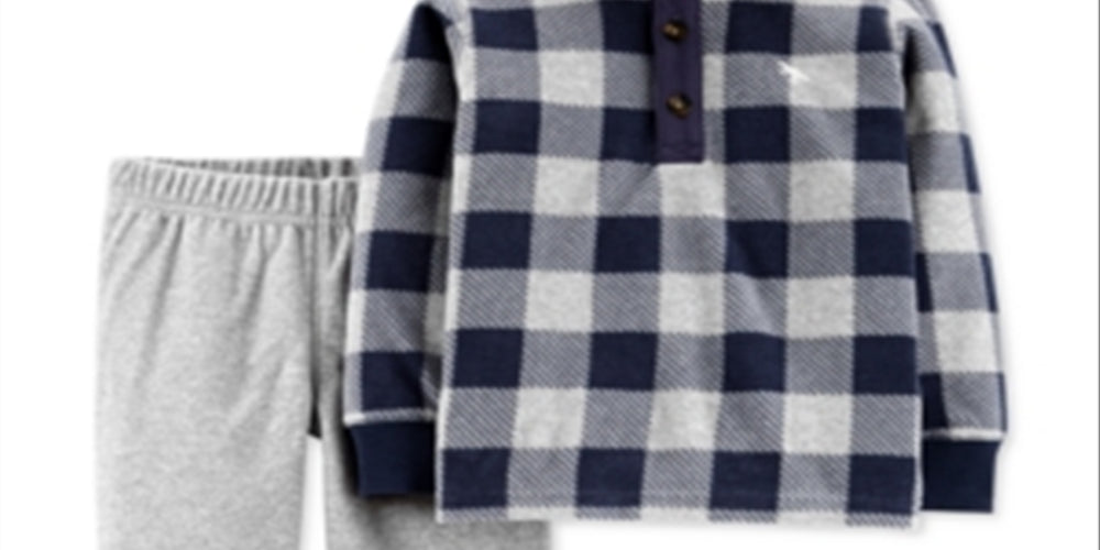 Toddler Boy Carter's 2-Piece Plaid Fleece Pullover & Joggers Set Navy