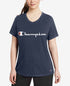A classic look in a flattering modern length| this plus size T-shirt from Champion features a timeless logo and a stylish V-neckline.| Imported| V-neckline| | Connect with a stylist & get free expert advice online or in stores for your wardrobe| home & more. Book Now
