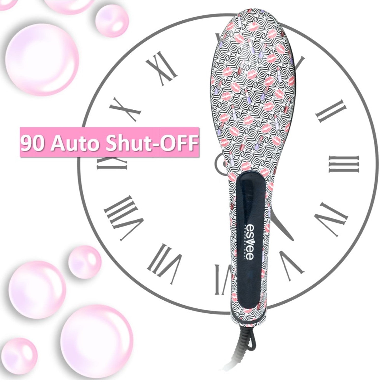 Esvee Professional Hair Bristle Straightener - Ceramic Heating Hair Straightener Brush with Anti-Frizz Technology, Auto-Off and 30s Heat-Up
