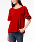 INC International Concepts Women's Petite Ruffled-Sleeve Top Red Size Small