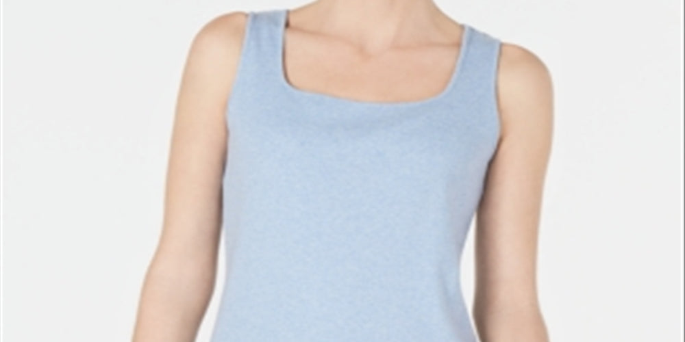 Karen Scott Women's Square Neck Cotton Tank Top Blue Size Small