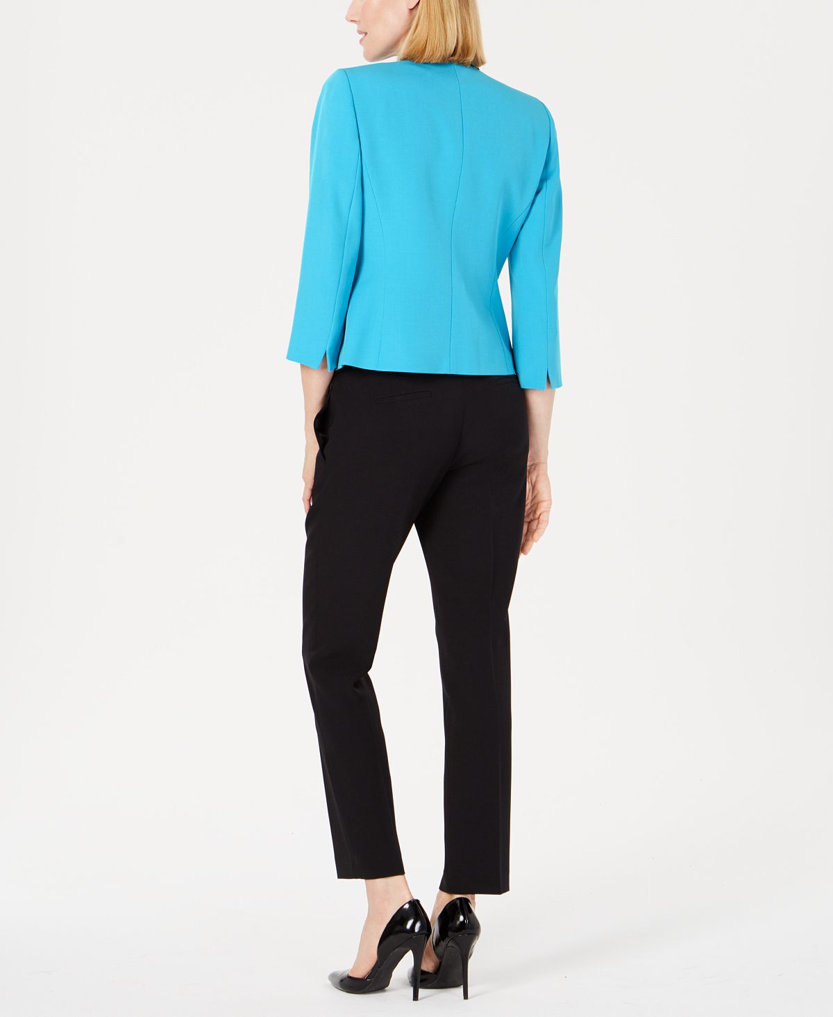 Designed to fit and flatter 5'4 and under frame| Jacket; approx. 21 long| shawl collar| single front button closure| lined