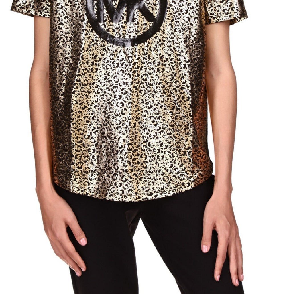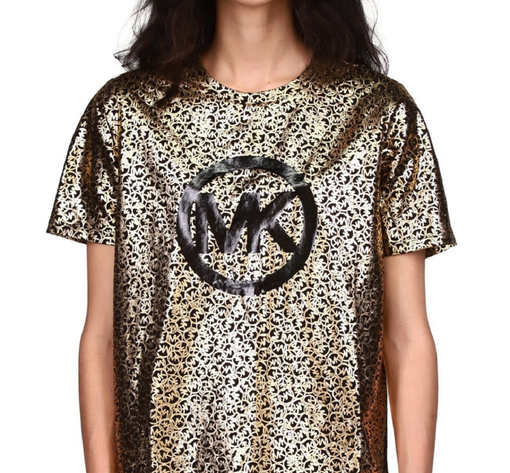 Ensure all eyes are on you with the scattered foil logo design on this petite Michael Kors T-shirt while the breathable cotton fabric keeps you comfortable.| Approx. 25-1/2 long| Designed to fit and flatter 5'4 and under frame| Crewneck| All cotton| Hand wash| Imported