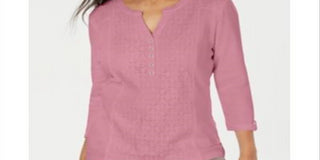 Karen Scott Women's Lace Front Henley Top Pink Size Small
