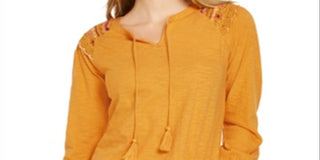 Style & Co Women's Embroidered Shoulder Top Yellow Size Small