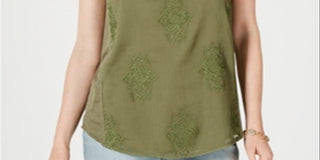 Style & Co Women's Embroidered Sleeveless Tank Top Green Size Large