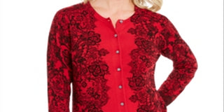 Karen Scott Women's Lace Trails Cardigan Red Size Petite