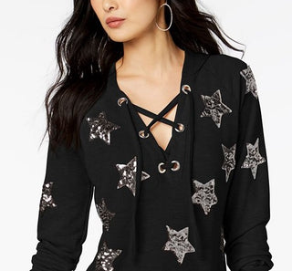 INC International Concepts Women's Embellished Star Hoodie Black Size Small