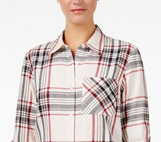 Style & Co Women's Plaid One Pocket Shirt Black Size Small