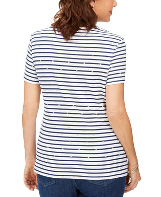 Karen Scott Women's Starlight Striped Henley Top Blue Size Medium