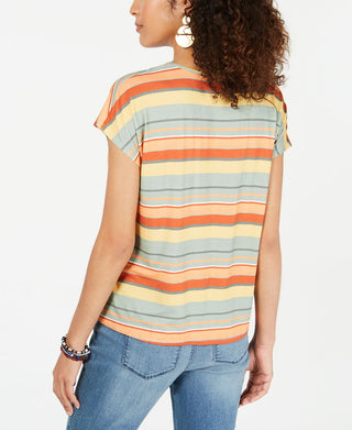 Style & Co Women's Striped Tie Front T-Shirt Coral Size XL