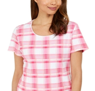 Karen Scott Women's Printed Scoop Neck Top Pink Size X-Small