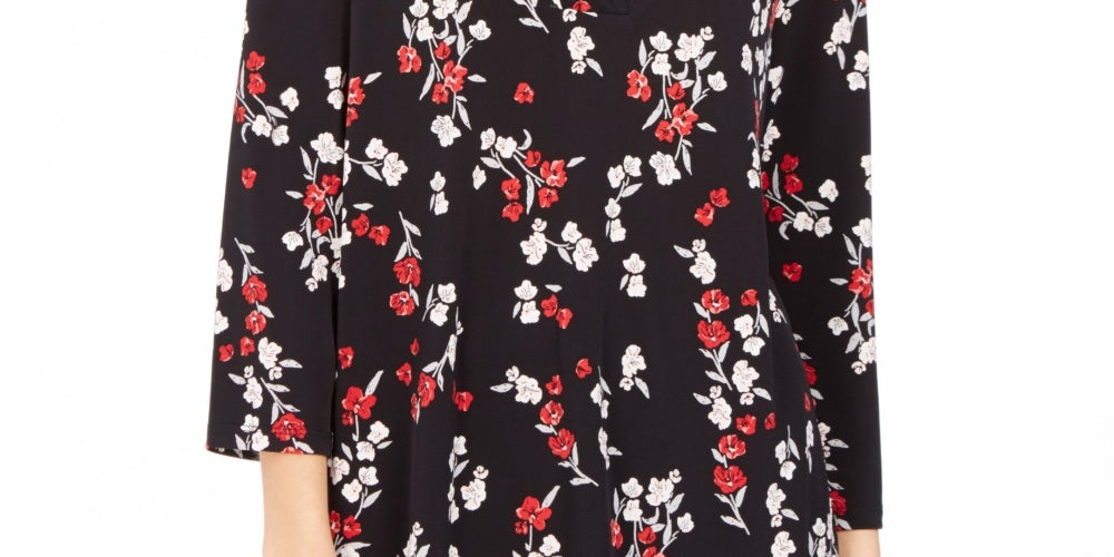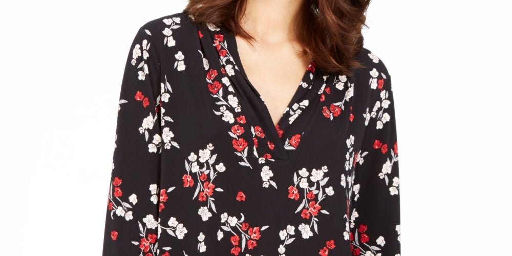 Charter Club Women's Printed V Neck Top Black Size XX-Large