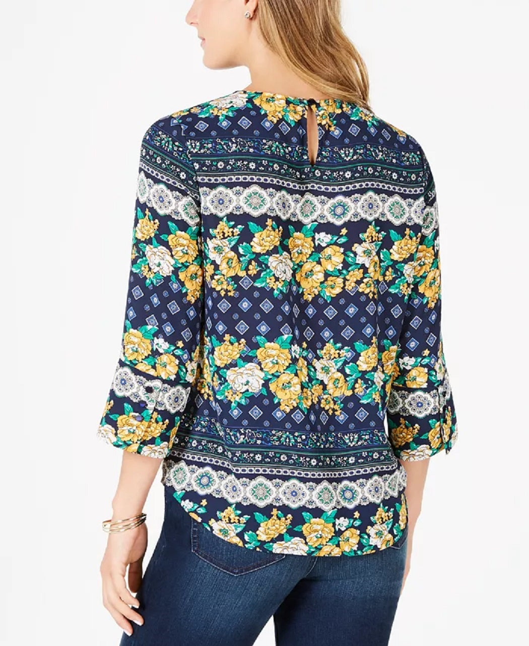 Charter Club Women's 3/4 Sleeve Printed Top Blue Size Medium