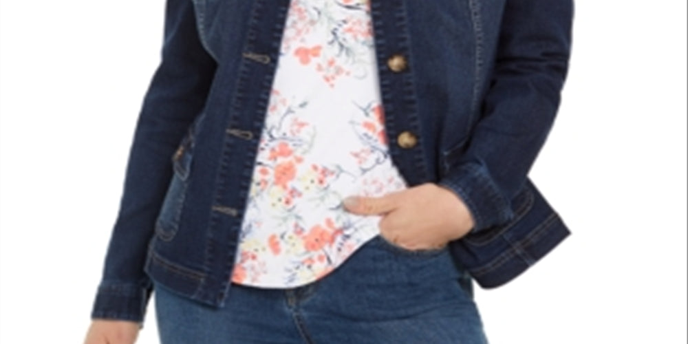 Charter Club Women's 4 Pocket Denim Jacket Blue Size Small