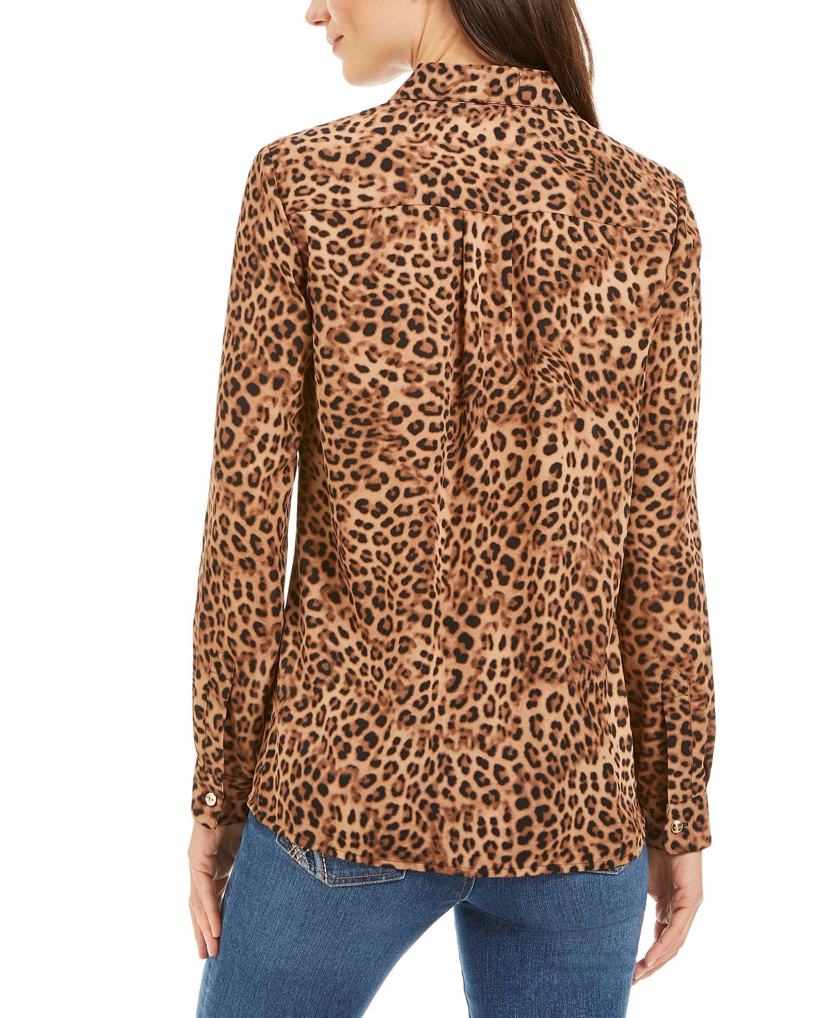 Charter Club Women's Animal Print Blouse Brown Size Large