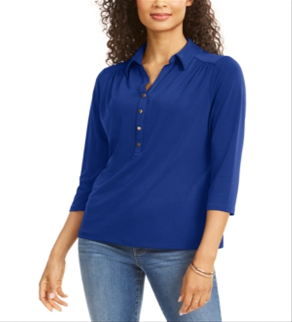 Charter Club Women's Knit Polo Shirt Blue Size XX-Large