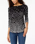 Charter Club Women's Pima Cotton Button Shoulder Print Top Black Size X-Small