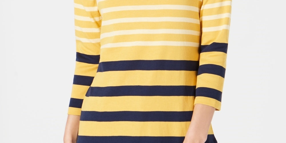 Charter Club Women's Pima Cotton Button-Shoulder Stripe Top Gold Size X-Small