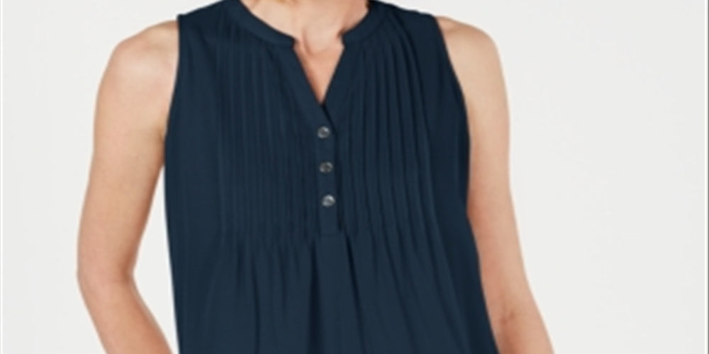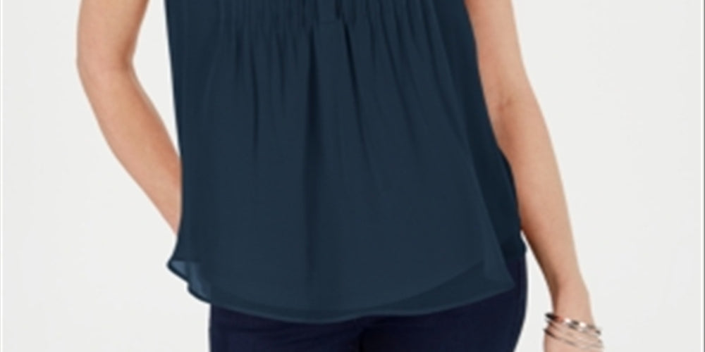 Charter Club Women's Sleeveless Pintuck Blouse Blue Size X-Large