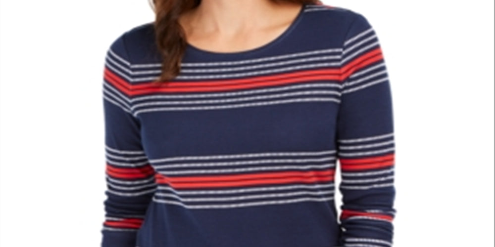 Charter Club Women's Striped Cotton Top Blue Size Small